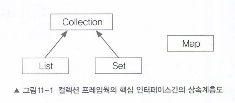 컬렉션 프레임웍에서는 컬렉션데이터 그룹을 크게 3가지 타입이 존재한다고 인식하고 각 컬렉션을 다루는데 필요한 기능을 가진 3개의 인터페이스(List