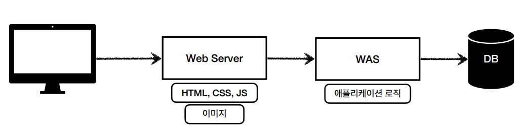 - 웹 서버는 애플리케이션 로직같은 동적인 처리가 필요하면 WAS에 요청을 위임