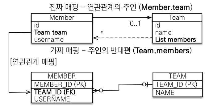 - 양방향 매핑은 반대 방향으로의 조회(객체 그래프 탐색) 기능이 추가된 것 뿐