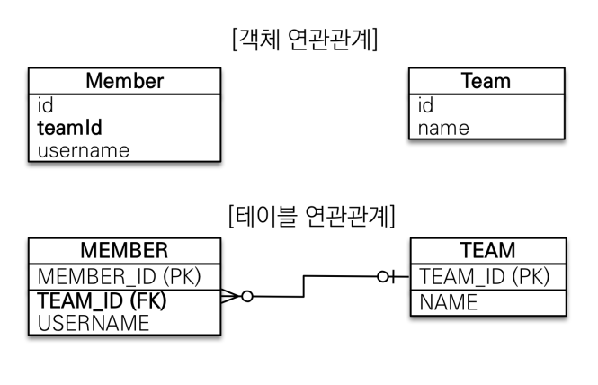 참조 대신 객체가 외래 키를 그대로 사용하는 것은 객체 끼리의 연관관계가 없는 것과 같다.