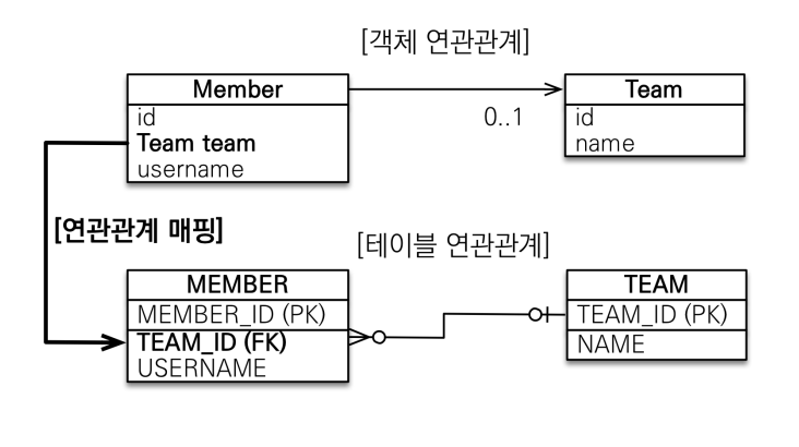 객체의 참조와 테이블의 외래키를 매핑하자.
