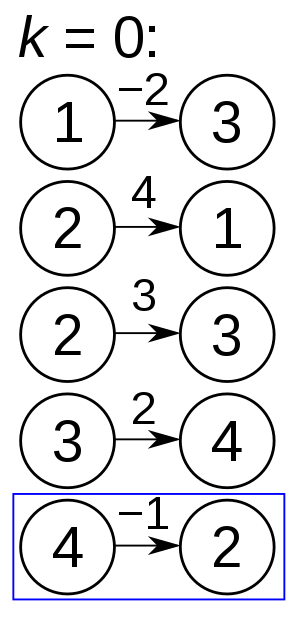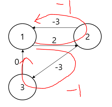 음수 사이클은 변의 가중치의 합이 음수를 갖는 사이클이다. 음수 사이클을 구성하는 어떤 꼭짓점 쌍 i,j에 대해서든지 i에서 j로 가는 경로의 길이는 음의 무한으로 내려갈 수 있기 때문에 최단 경로가 존재하지 않는다.