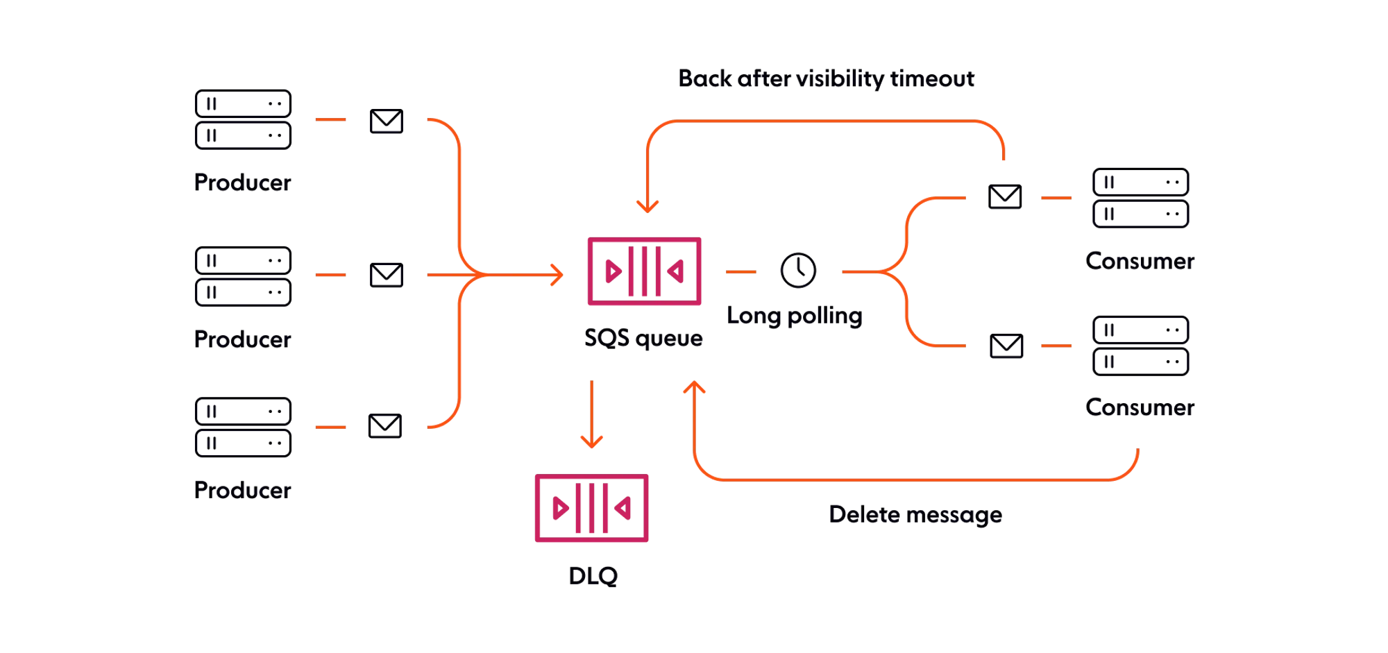 - Producers : 처리할 작업 메시지를 SQS에 등록