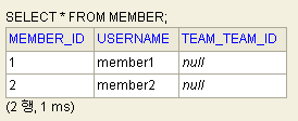 MEMBER 테이블에 TEAM_(TEAM의 PK) 명으로 외래키 저장됨 (이 경우 TEAM_TEAM_ID)