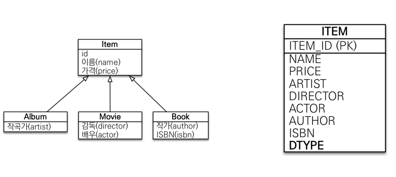 - TABLE_PER_CLASS: 구현 클래스마다 테이블 전략